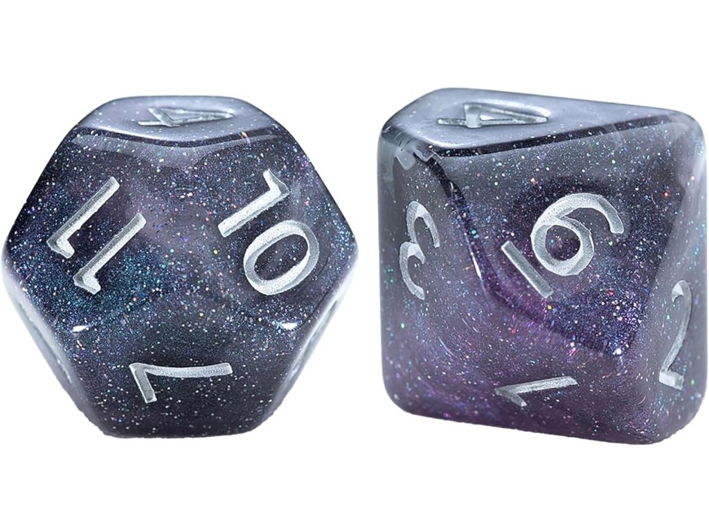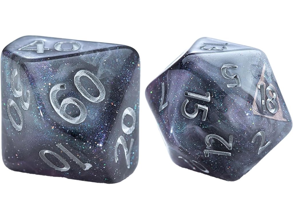 - 🧙♂️ Kompletní sada 7 kostek (D4, D6, D8, D10, D12, D20 a procentová D10) s dobře čitelným fontem a výraznými čísly pro pohodlné hraní.
