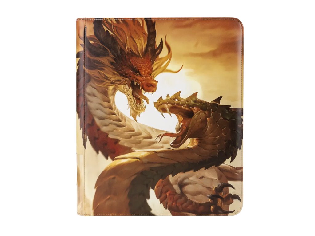 Po otevření vás uvítá kvalitní vnitřní zpracování, které bezpečně pojme až 360 jednotlivých karet. Součástí balení jsou ukázkové listy Dragon Shield s 16 a 18 kapsami – v provedení non-glare i čirém – pro okamžité použití. Robustní zip chrání obsah při přenášení a praktická kapsa na hřbetu pořadače umožňuje vložit štítek pro snadnou organizaci.