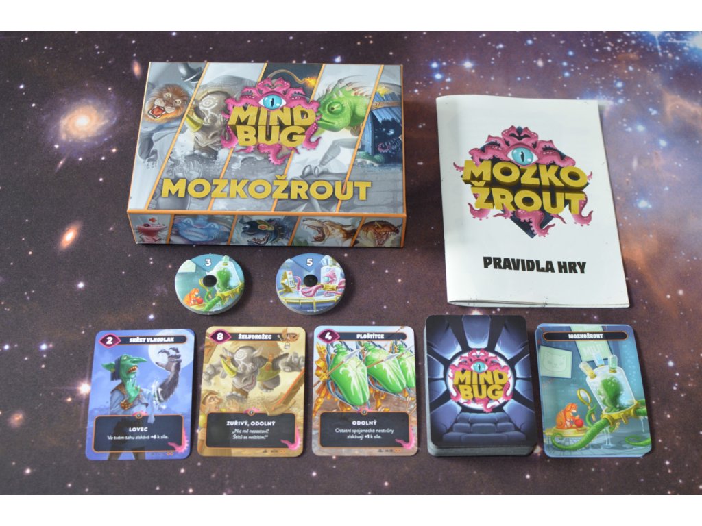 Mozkožrout mate tělem – tato malá, rychlá a na pravidla nenáročná hra se střelenými mutanty (do hry tak vystupují třeba klokanosaurus rex, drakomýžď či tryskomár) mozky nejen žere, ale i jaksepatří zamotává. Z klasických soubojových dvojkovek „hraj příšery a připrav soupeře o životy“ si bere úplný základ, který ovšem osekává od všeho zbytečného a pozvedává ho naprosto originální mechanikou: na začátku hry mají oba hráči k dispozici dva mozkožrouty, díky kterým si soupeřem pracně zahranou příšeru prostě vezmete a vyložíte.