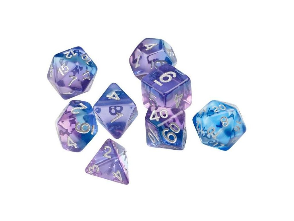 Vydejte se na dobrodružství s touto půvabnou sadou Violet Betta od Sirius Dice! Obsahuje 7 polyedrických kostek + jednu extra D20, všechny pečlivě umístěné v praktickém tubusu s plochým dnem – ideální společník na herní cesty i útočiště.